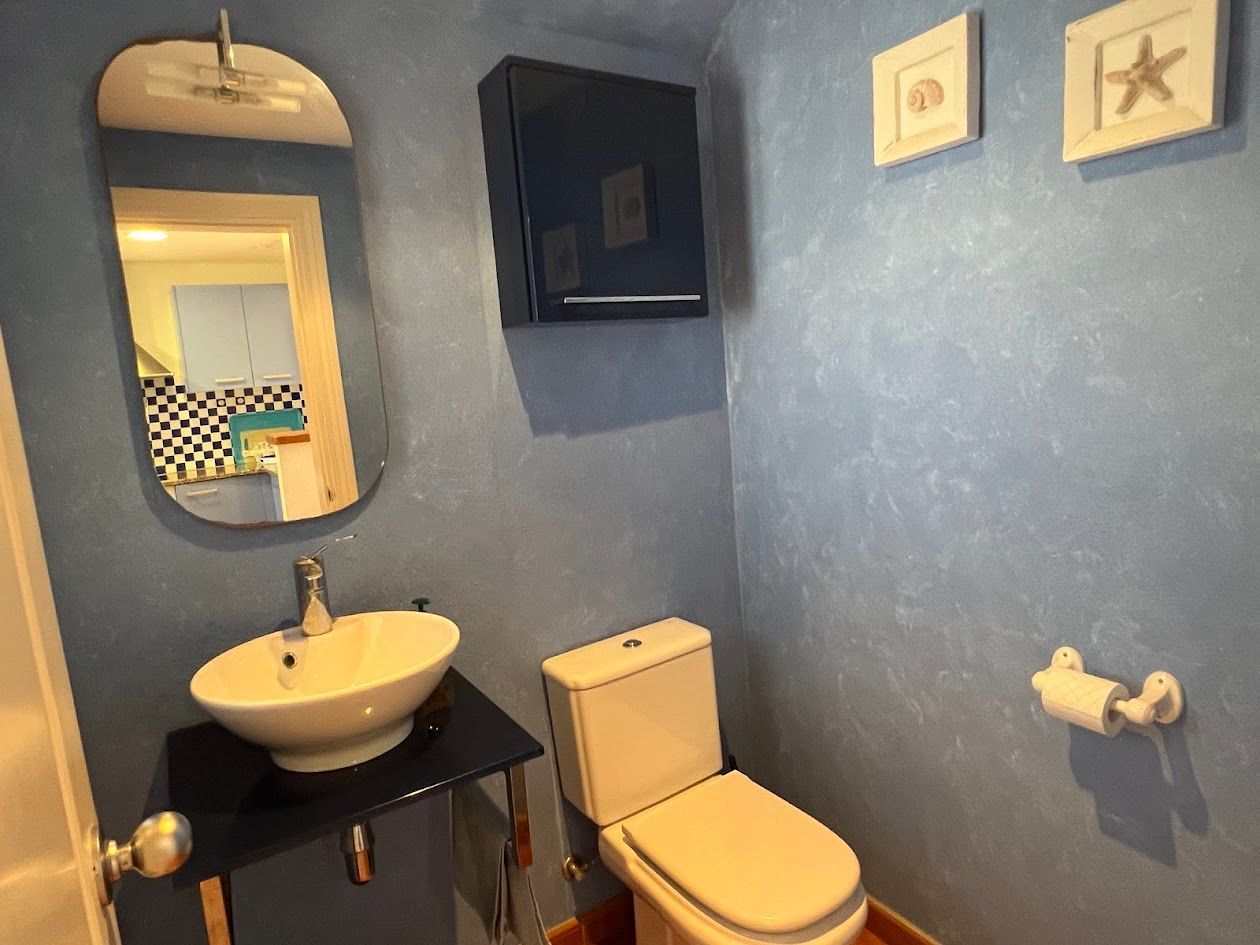 Das Haus ist auf 3 Ebenen verteilt und verfügt über 2 private Parkplätze: einen Außenbereich direkt vor dem Haus und einen Platz mit Abstellraum in der Gemeinschaftsgarage. Das Haus ist mit einer Klimaanlage ausgestattet.