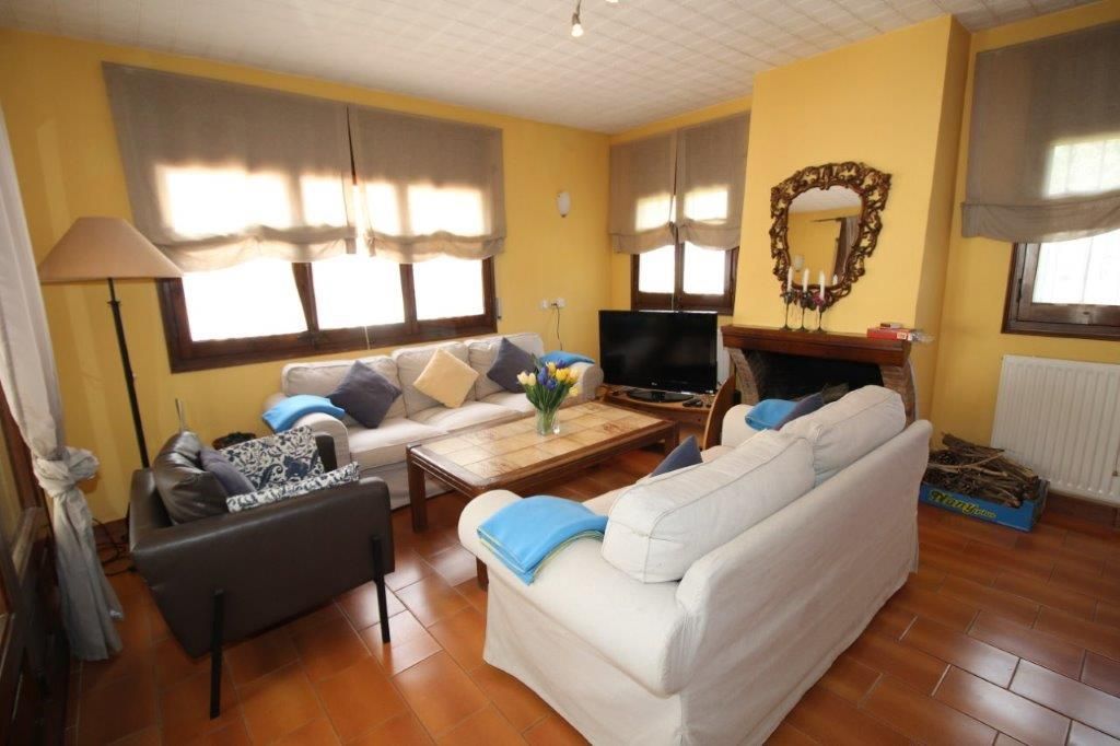 Au rez-de-chaussée se trouve le salon avec cheminée et accès à une terrasse partiellement couverte et à la piscine, une cuisine, deux chambres doubles et une simple, ainsi que deux salles de bains avec douche. A l'étage supérieur se trouve une grande chambre et une salle de bain, facilement transformable en bureau ou salle de jeux.