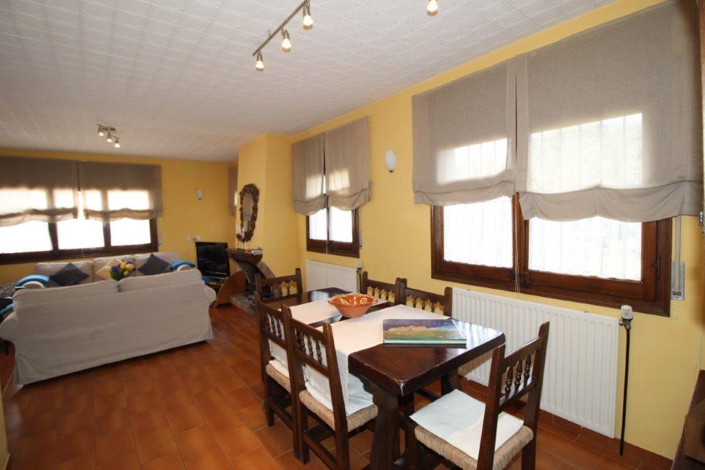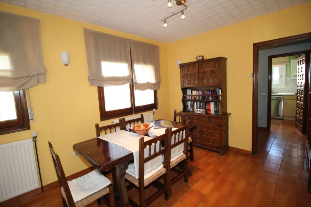En la planta principal se encuentra el salón comedor con chimenea y acceso a una terraza cubierta y a la zona de piscina, cocina independiente equipada con salida a un jardín, dos dormitorios dobles y uno individual, dos cuartos de baño con ducha.